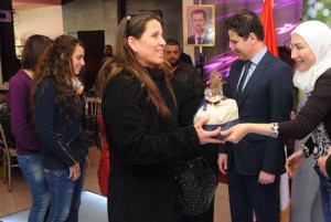 كرمت وزارة السياحة عددا من ذوي الشهداء بمناسبة أعياد آذار خلال فعالية أقامتها بمطعم كثبان بمدينة الشباب بدمشق.