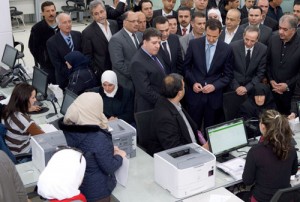 بعد ذلك جال الرئيس الأسد في عدد من أقسام مديرية التنظيم واطلع من الموظفين على آلية العمل وطبيعة الخدمات التي يقدمونها للمواطنين المستفيدين من المشروع وآليات التواصل بين مختلف الجهات المعنية بالتنفيذ.