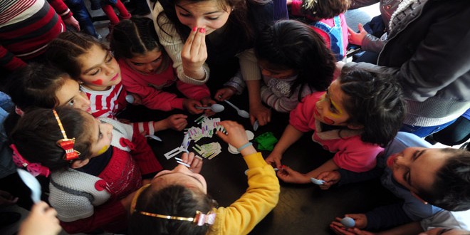 بدوره أكد محمد غزال من فريق “عمرها” التطوعي أهمية مشاركة البسمة والفرح مع الأطفال ونشر جو الألفة لما يحمله العمل التطوعي من طاقة إيجابية ومحبة تستمد من الأطفال وعائلاتهم فيما أشارت كريستين من فرقة “مراسم كنيسة الصليب المقدس” إلى أن هدف إسعاد الأطفال عبر مشاركتهم النشاطات يسهم بإعادة الفرح الذي فقدوه جراء الحرب الإرهابية على سورية.