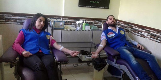 بمناسبة أعياد آذار نظم مكتب العمل التطوعي والبيئة في فرع ريف دمشق لاتحاد شبيبة الثورة حملة تبرع بالدم في مركز جامعة دمشق لنقل الدم بمشاركة 40 شاباً وشابة من عدد من مناطق ريف دمشق.