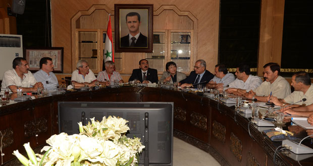 بحث محافظ حلب محمد وحيد عقاد مع ممثلة منظمة الأغذية والزراعة التابعة للأمم المتحدة (الفاو) في سورية السيدة أيريكو هيبي اليوم مجالات العمل المشترك والخطط الرامية لإيصال وتأمين احتياجات الفلاحين ومربي الثروة الحيوانية داعيا منظمة الفاو إلى دراسة إمكانية إعادة تأهيل بعض المؤسسات الزراعية المتضررة كالدواجن والمباقر وغيرها لما في ذلك من انعكاس إيجابي على المواطنين بشكل عام.