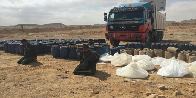 القسيمة تم الاشتباه بإحدى سيارات النقل المحملة بمواد البناء وبتفتيشها عثر بداخلها على مواد تستخدم في صناعة المتفجرات”.