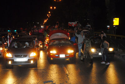 جابت اتوستراد المزة بدمشق مساء أمس مسيرة حاشدة بالسيارات احتفالاً بفوز الدكتور بشار الأسد بالانتخابات الرئاسية حمل فيها المواطنون الأعلام الوطنية ورددوا الهتافات التي تعبر عن عن ابتهاجهم بفوز من يمثلهم ويعبرعن تطلعاتهم .