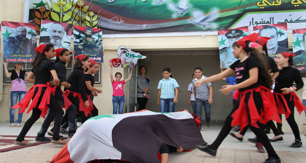 وتضمنت الفعاليات عرضا راقصا للاطفال بعنوان “سورية أنت عزنا” وقصائد للشعراء ابراهيم شحود وعمار الفرا والجريح محمود محمد والطفلة مريم محمد وعرض مسرحية “لا نساوم” من تأليف المدرسة سمية خضور وأغان وطنية بصوت عازف العود الطفل مجد اسماعيل.