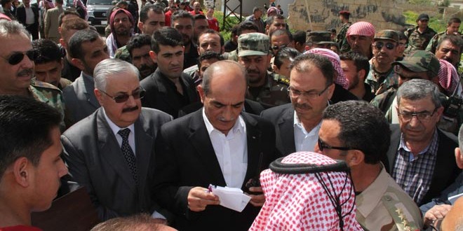 وخلال جولة تفقدية له وأمين فرع حماة لحزب البعث العربي الاشتراكي مصطفى سكري للقرية اليوم طلب المحافظ من مديري الشركة العامة للصرف الصحي والشركة العامة لكهرباء حماة والمؤسسة العامة لمياه الشرب والمؤسسة العامة للاتصالات ومديرية الخدمات بإصلاح وصيانة سائر شبكات الصرف الصحي والمياه والكهرباء والهاتف والطرق ريثما يتم إعداد الكشوف التقديرية للخدمات والبنى التحتية للحصول على موافقات الجهات المعنية بالحكومة لإعادة تأهيلها.