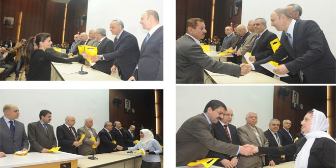 حضر التكريم الدكتور جمال المحمود أمين فرع جامعة دمشق لحزب البعث العربي الاشتراكي وأعضاء قيادة الفرع وعمداء الكليات ومديرو المشافي التعليمية ورئيس فرع نقابة المعلمين بجامعة دمشق والعاملون الإداريون في المشافي.