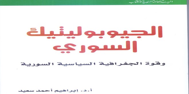 يقدم كتاب “الجيوبوليتيك السوري وقوة الجغرافيا السياسية السورية” للدكتور إبراهيم أحمد سعيد دراسة شاملة في الخصائص الطبيعية والسكانية والاقتصادية لدى سورية ومكوناتها الجغرافية ومظاهر قوة الدولة السورية وأهدافها الجيوبوليتيكية فضلا عن الواقع العمراني وأبعاد واتجاهات الهجرة.
