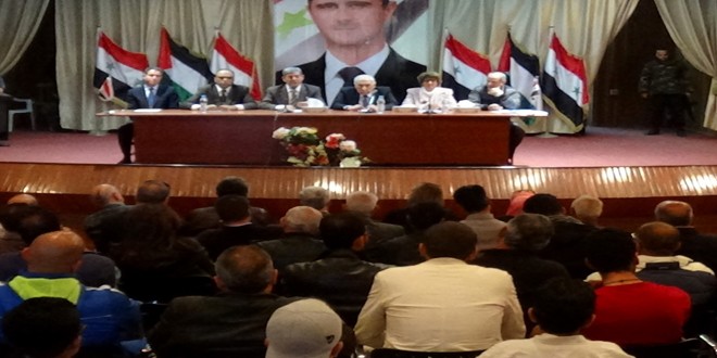 حضر اللقاء محافظ درعا محمد خالد الهنوس وأمين فرع درعا لحزب البعث العربي الاشتراكي كمال العتمة.