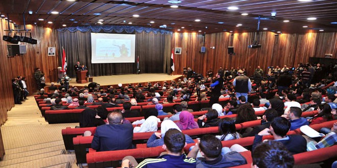 وفي كلمة له خلال المهرجان أكد أمين عام اتحاد الطلبة العرب الدكتور نضال عمار أن “القرارات التي يقف وراءها حكام الخليج بتصنيف حزب الله “منظمة إرهابية” إنما تمثل عدوانا سافرا على سورية وفلسطين ولبنان والأمة برمتها وعدوانا على مقاومة عربية رفعت رأس العرب عاليا في زمن المساومات والتنازلات والحريات المزيفة”.