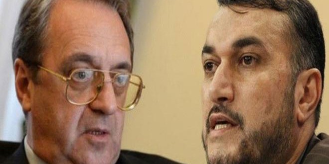 وكان بوغدانوف وعبد اللهيان بحثا في الثالث من الشهر الجاري سبل التنسيق الثنائي بين البلدين بشأن حل الأزمة في سورية والجهود المشتركة للتصدي لتنظيم “داعش” وغيره من التنظيمات الإرهابية.