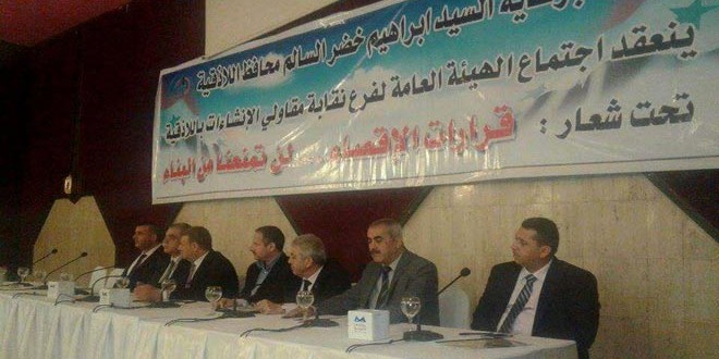 بدوره أشار رئيس فرع نقابة المقاولين باللاذقية المهندس نبهان عيسى إلى أن الظروف الراهنة التي تمر بها سورية والصعاب الناتجة عنها ساهمت في إيقاف العديد من المشاريع وتأخير تسليم الجزء الباقي منها مؤكدا استمرار عملية البناء والإعمار في سورية بفضل الانتصارات المتتالية التي يحققها أبطال الجيش العربي السوري على كامل الجغرافيا السورية.