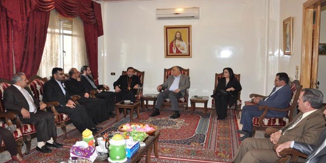 وشملت معايدات محافظ حمص مساء اليوم كنيسة سيدة النجاة في زيدل للسريان الكاثوليك وكنيسة مار شربل للرعية المارونية في حي الارمن بالمدينة.