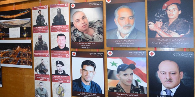 وتضمن المعرض صورا لأعضاء الرابطة من الضباط المتقاعدين الذين استشهدوا في سبيل الوطن خلال الحرب العدوانية التي تشن على سورية من قوى التكفير والإرهاب المدعومة من الإمبريالية الأمريكية والعدو الصهيوني والدول المتورطة بسفك الدم السوري ولشهداء من الجيش والقوات المسلحة.