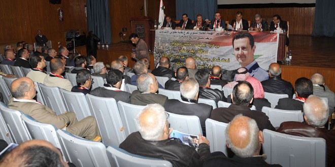 وأكد الدكتور المهندس معلا الخضر معاون وزير الأشغال العامة أن صمود مقاولي ريف دمشق بمحافظتهم” ما هو إلا تعزيز لقواتنا المسلحة ودعم لها” معربا عن أمله بعودة المقاولين الذين غادروا خارج البلاد لكي يساهموا ببناء سورية المستقبل.