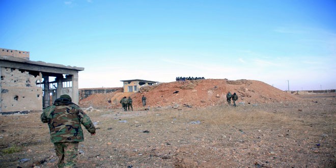 وذكرت مصادر ميدانية لمراسل سانا أن وحدة من الجيش نفذت عملية تكتيكية في حي المطار القديم على الأطراف الجنوبية لمدينة دير الزور حيث “فجرت نفقا بطول 20 مترا حفرته تحت نقاط تحصن إرهابيي تنظيم “داعش” في الحي أسفر عن مقتل وإصابة عدد من الإرهابيين”.