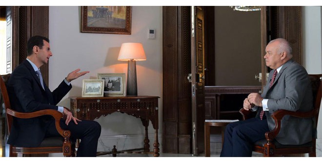 وأوضح الرئيس الأسد أن الإرهاب في سورية والعراق مدعوم من تركيا والسعودية وجزء من الدول الغربية مثل فرنسا وبريطانيا بينما باقي الدول تنظر وتشاهد ولا تقوم بعمل جاد مشيرا إلى أن الحصار والعقوبات الغربية على سورية هي أحد أسباب مشكلة الهجرة.