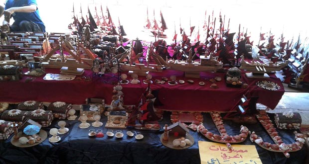وفي مكان آخر تم تحضير وعرض مجموعة من المأكولات الشعبية كأقراص أبو امون والهريسة والشنكليش والسميد والمجدره المزينة بالبصل والزيتون والمكدوس والكشك والمتبل والبرغل وعرانيس الذرة المسلوقة والمشوية على الفحم كما تم أيضا عرض عدد من الأعمال الفنية ضمن لوحات حرق على الخشب وبعض الإكسسوارات التزينيية الخاصة بالبيوت و المطابخ القديمة.