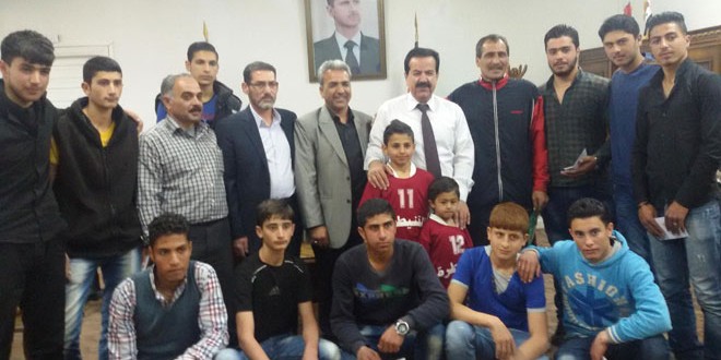 كرمت محافظة القنيطرة اليوم فريق ناشئي كرة الطائرة بنادي التحرير الرياضي لإحرازه المركز الثالث على مستوى الجمهورية وذلك في مبنى المحافظة بمدينة البعث.