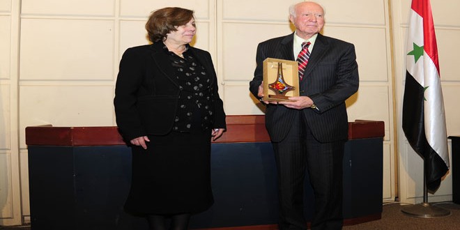 وأكدت رئيسة جمعية “أصدقاء دمشق” أمل محاسن في كلمة لها أن تكريم العمادي عربون شكر بسيط عن مسيرته الطويلة التي قضاها في خدمة سورية ولا سيما في الجانب الاقتصادي.