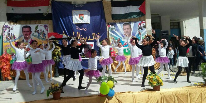 تضمن الملتقى الفني الذي أقامه فرع منظمة طلائع البعث باللاذقية بمدرسة خالد بن الوليد اليوم فقرات فنية منوعة عبرت عن حب الوطن شارك بها أربع عشرة مدرسة من مدينة اللاذقية.