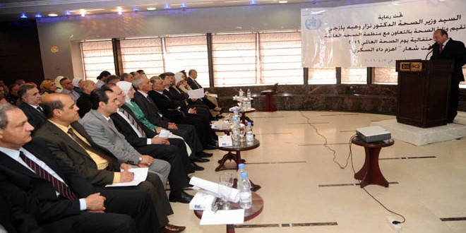 أقامت وزارة الصحة بالتعاون مع منظمة الصحة العالمية احتفالية بمناسبة يوم الصحة العالمي تحت عنوان “اهزم داء السكري” وذلك في فندق بلوتاور بدمشق.
