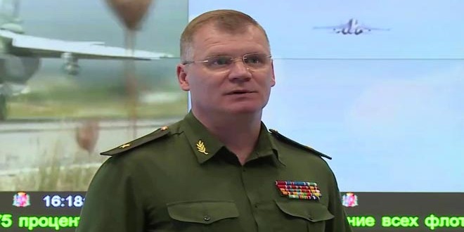ونقل موقع روسيا اليوم عن اللواء إيغور كوناشينكوف المتحدث باسم الوزارة قوله في مؤتمر صحفي عقده في تدمر مساء اليوم ان ثمة معلومات تفيد بأن الفصائل المسلحة الناشطة جنوبي وغربي حلب والتي أعلنت في السابق انتماءها إلى المعارضة السورية وضعت نفسها تحت إمرة إرهابيي “جبهة النصرة” وتشارك في الاستفزازات جنبا إلى جنب مع مسلحيهم.