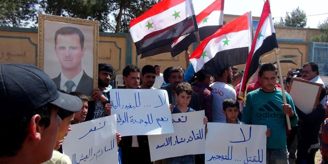 أقام أهالي قرية البولادية بريف القامشلي اليوم فعالية شعبية تأكيداً على وحدة تراب الوطن وتلاحم ووحدة السوريين في مواجهة الحرب الإرهابية التي تشن على سورية.