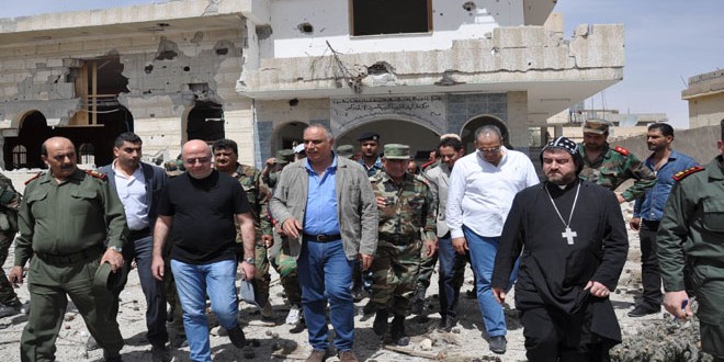 أكد محافظ حمص طلال البرازي أن الورشات المعنية بجميع القطاعات الخدمية في مدينة القريتين بريف حمص تتابع عملها لتوفير متطلبات المواطنين بالتزامن مع عودة عدد من الأهالي واصلاح ما تضرر جراء اعتداءات تنظيم “داعش” الإرهابي داعيا أهالي المدينة للعودة مباشرة ضمن ترتيبات ستقوم بها قوى الأمن الداخلي.