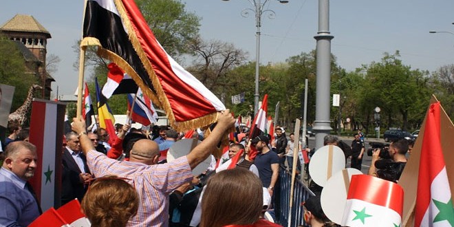 أقامت الجالية العربية السورية في رومانيا بالتعاون مع المؤسسات الوطنية السورية وقفة وطنية حاشدة في العاصمة الرومانية بوخارست اليوم تضامنا مع الوطن الأم سورية ودعما للجيش العربي السوري وقيادته في مواجهة الإرهاب.