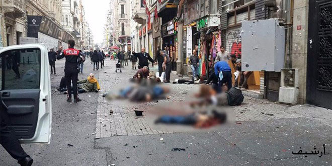 وكان 5 أشخاص قتلوا وأصيب نحو 36 آخرين جراء تفجير انتحاري استهدف شارع الاستقلال التجاري في مدينة اسطنبول في 19 من الشهر الماضي.