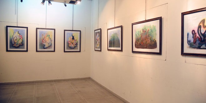 قدمت التشكيلية شمس درويش في معرضها الفردي الثاني بعنوان صخب الذي افتتح مساء اليوم في ثقافي أبو رمانة تجربتها الفنية لأول مرة في مدينة دمشق وهي القادمة من محافظة اللاذقية حاملة معها حبها الكبير للطبيعة بفطريتها وغناها اللوني.