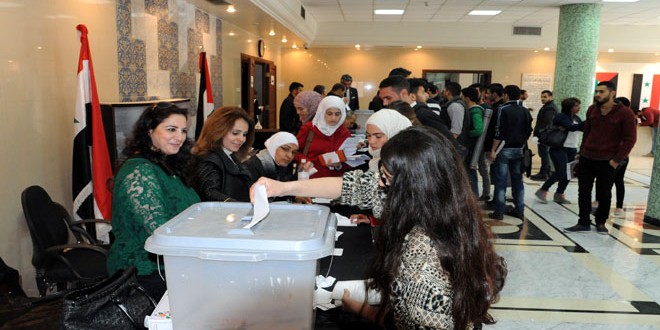 وفي تصريح لـ سانا بين رئيس مركز انتخابات كلية السياحة في جامعة دمشق فايز الدبس أن المركز شهد إقبالاً كثيفاً وفيه صندوق لمحافظة دمشق وصناديق لمحافظات درعا وادلب ودير الزور والرقة وحلب وريفها وانه لم تقع اي مشاكل خلال اجراء العملية الانتخابية.