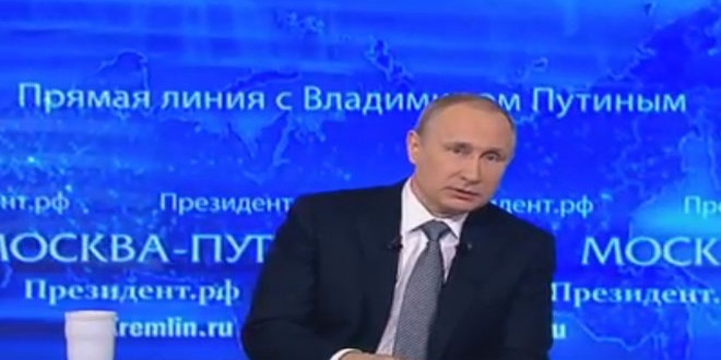 وأوضح بوتين خلال حواره السنوي المتلفز مع الشعب الروسي اليوم أن القرار الروسي بسحب الجزء الأساسي من القوات في سورية لم يؤد إلى تراجع قدرات الجيش السوري وقال “لقد سحبنا جزءا كبيرا من مجموع قواتنا في سورية ولكننا تركنا الجيش السوري في حالة تسمح له بإجراء عمليات هجومية واسعة النطاق بدعم قواتنا المتبقية في سورية وهو ما حصل بالفعل حيث استعاد الجيش السوري مدينة تدمر وبلدات أخرى ذات أهمية استراتيجية كما أن عدد البلدات التي انضمت إلى وقف الأعمال القتالية والمصالحة يزداد”.