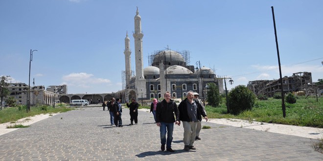 أكد وفد سياح السلام من أجل سورية بعد زيارته اليوم عدة مواقع في مدينة حمص القديمة أن مسؤولية الخراب والدمار الذي تعرضت له سورية تقع على عاتق الدول التي دعمت ومولت الإرهاب وعلى رأسها الولايات المتحدة الأمريكية.