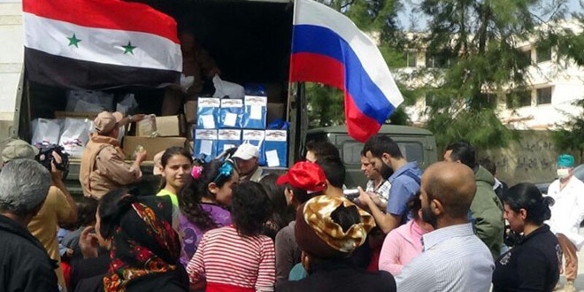 وأوضح ممثل مركز التنسيق الروسي في حميميم المكلف الإشراف على توزيع المساعدات أن روسيا تواصل تقديمها المساعدات الغذائية والإنسانية للسوريين ولا سيما في المناطق التي تتم إعادة الأمن والاستقرار إليها.