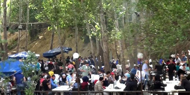 في دمشق.. الحياة عامرة بالياسمين ورقرقة بردى كمعزوفة فرح الأطفال في أراجيح منتزهات الربوة اليوم، إذا جرت العادة عند أهالي دمشق الخروج منذ صباح يوم الجمعة إلى الحدائق العامة والمطاعم وملاهي الأطفال في صورة تعكس قدوم اخضرار الربيع على أشجار الربوة ابتسامة على ثغر طفل في أرجوحة يستقبل فصل الصيف.