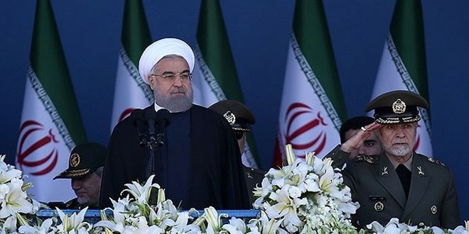 وكان بدأ صباح اليوم الاستعراض العسكري للقوات المسلحة الايرانية بحضور روحاني وعدد من ضباط الجيش الايراني والحرس الثوري وقوات التعبئة بمناسبة يوم الجيش الايراني عرض خلاله أحدث الصناعات العسكرية للجيش الإيراني على الصعيد البري والبحري والجوي ومنظومة /اس 300/ الروسية للدفاع الجوي.