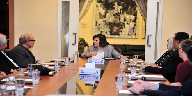 ونوهت شعبان خلال لقائها اليوم وفد السينودوسي الإنجيلي والكنيسة الإنجيلية المشيخية في الولايات المتحدة بصمود وتضحيات الجيش العربي السوري خلال السنوات الماضية وثبات كل السوريين في مواجهة الإرهاب.