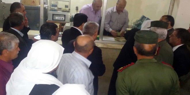 باشر فرع المصرف الزراعي التعاوني بمحافظة القنيطرة اليوم بعملية صرف /640ر48/ مليون ليرة سورية كتعويض عن الأضرار التي لحقت بأشجار التفاح والكرز جراء موجة الصقيع التي ضربت المحافظة شتاء العام الماضي.
