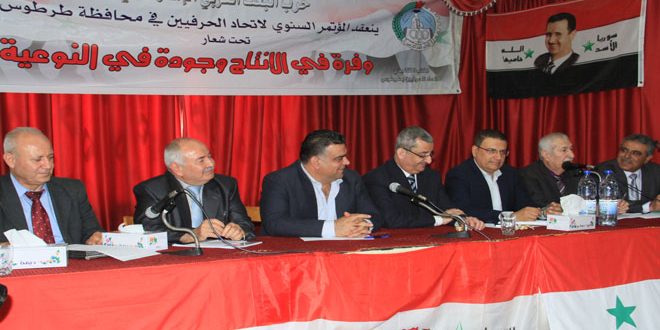 حضر المؤتمر أمين فرع طرطوس لحزب البعث العربي الاشتراكي غسان أسعد وعضو قيادة الفرع الدكتور عماد عرنوق وأمين سر الاتحاد العام للحرفيين ياسين عبد ربه.