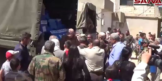 بالفيديو.. توزيع مساعدات إنسانية مقدمة من روسيا الاتحادية على أهالي قريتي الجابرية وبادو بريف حمص الشرقي
