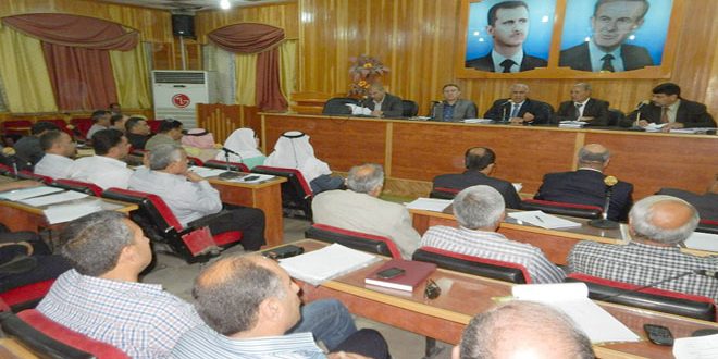 من جهته استعرض مدير الزراعة المهندس عامر سلو المساحات المزروعة بالمحاصيل الاستراتيجية حيث تبلغ مساحات القمح المروي والبعل 472 ألف هكتار ومساحة الشعير المروي والبعل 335 ألف هكتار والعدس 48 ألف هكتار وجميع المساحات قابلة للحصاد مؤكدا “أن الحالة العامة للمزروعات جيدة والظروف الجوية الحالية ملائمة لتحسن حالة المحاصيل الزراعية بعد الأمطار الخيرة التي شهدتها معظم مناطق المحافظة في آذار ونيسان”.