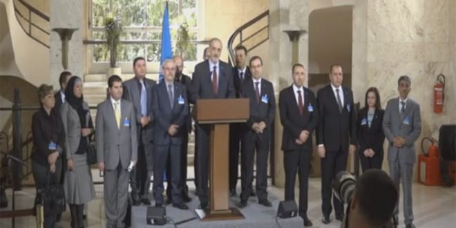 مؤتمر صحفي للجعفري عقب جلسة محادثات بمقر الأمم المتحدة بجنيف مع نائب دي ميستورا