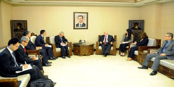 استقبل نائب رئيس مجلس الوزراء وزير الخارجية والمغتربين وليد المعلم اليوم السفير شيه شياو يان المبعوث الصيني الخاص إلى سورية والوفد المرافق.