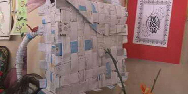 وبينت الطالبة بتول العيسى أنها شاركت في المعرض بلوحة زيتية مثلت فيها امرأة ريفية من دير الزور تشارك الرجل في العمل الزراعي بينما أشار الطالب وليد عليوي إلى أنه استخدم بقايا الورق والكرتون في صنع مجسماته وهي عبارة عن مجموعة من القوارير واواني الزهور.