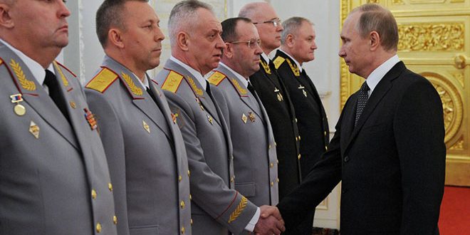 وقال بوتين خلال اجتماع اليوم مع مجموعة من ضباط الجيش الروسي بمناسبة تعيينهم في مناصب عليا: “إن القوات الجوية الفضائية الروسية نفذت في سورية مهمة داخلية بارزة تمثلت في مكافحة عصابات المجرمين المنحدرين من روسيا ورابطة الدول المستقلة”.