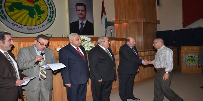 من جانبه لفت أمين فرع حلب لحزب البعث العربي الاشتراكي أحمد صالح إبراهيم إلى دور حرفيي حلب خلال الظروف الصعبة لجهة صمودهم وحرصهم على مواصلة العمل والإنتاج إيمانا منهم بدورهم المهم في تعزيز صمود الوطن في وجه الأعداء والإرهابيين.