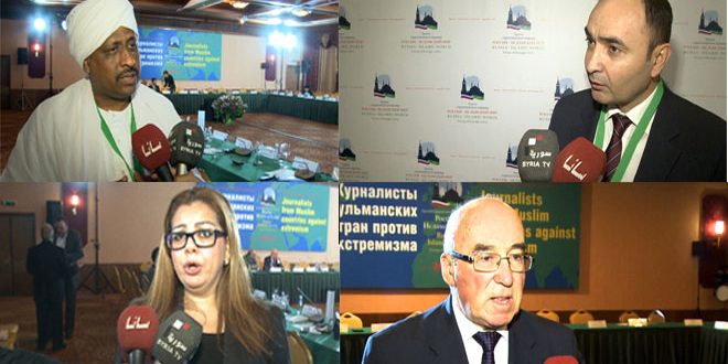 وأكد السفير الروسي السابق ميسر أعمال المنتدى فينيامين بوبوف في مقابلة مع مراسل سانا أن التطرف والإرهاب أصبحا يشكلان خطرا رئيسيا على العالم برمته وليس على المسلمين والمسيحيين فقط وضرورة التعامل معه كمرض خطير للغاية داعيا الى توحيد الجهود لمواجهة هذه الآفة معربا عن دهشته لعدم اعطاء الفرص لشرح الأنشطة الغريبة والفظيعة لهؤلاء الناس الذين يقطعون الرؤوس متسائلا كيف نقدم إمكانيات الدعاية الإعلامية لأفعال هؤلاء المجرمين.