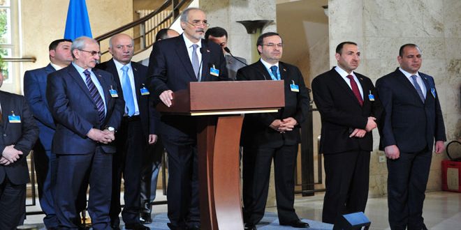 وختم الجعفري كلامه بالقول “إن الدول الداعمة للإرهاب في سورية قتلت روح الأمم المتحدة ودمرت قواعد القانون الدولي وهذا هو الإنجاز الرئيسي الذي تم تحقيقه من قبل هذه الدول الراعية للإرهاب في سورية والعراق لذلك يجب علينا أن نركز عليه باستمرار وان نذكركم جميعا باعتباركم من صناع القرار الإعلامي ومن خلالكم يجب على الحقيقة ان تصل إلى الرأي العام العالمي”.