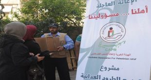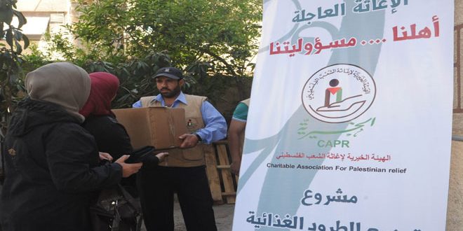 وزعت الهيئة الخيرية لإغاثة الشعب الفلسطيني في سورية اليوم مساعدات غذائية على الأهالي المهجرين من مخيم اليرموك ضمن مشروع “أهلنا … مسؤوليتنا” وذلك في حي الزاهرة بدمشق.